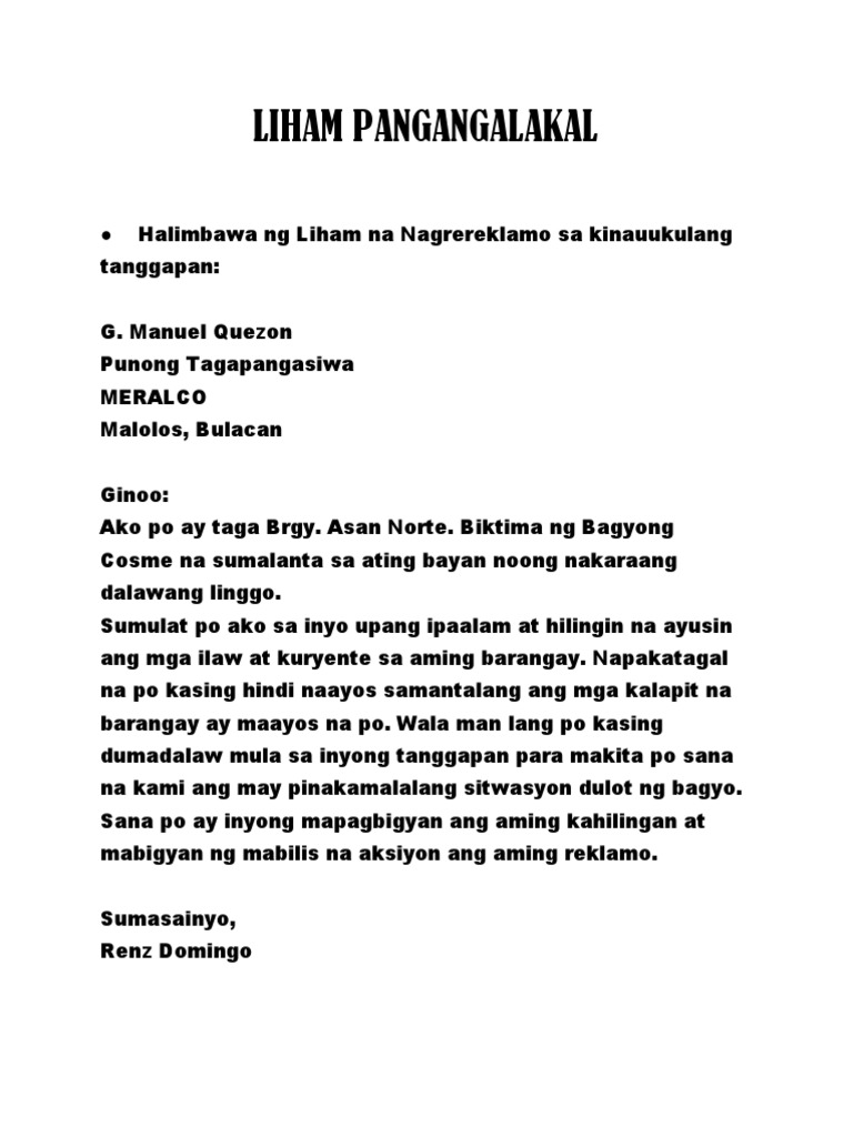 Liham Pangangalakal Filipino Pdf